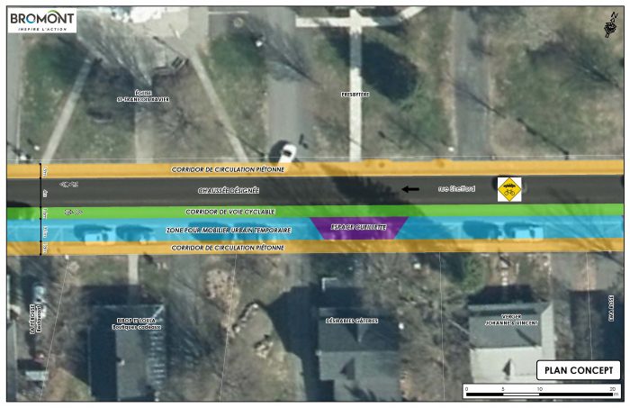 Ces réaménagements permettront de faciliter et sécuriser les déplacements actifs, valoriseront les espaces déjà existants, tout en soutenant la vitalité économique du secteur. Les commerçants de la rue Shefford pourront vendre leurs produits et marchandises dans des tentes ou chapiteaux à l’extérieur de leur établissement; alors que les cafés et les restaurants seront autorisés à aménager des terrasses couvertes ou non, pour la consommation de boissons ou d’aliments. Il sera aussi possible de casser la croûte dans plusieurs parcs et sur l’aire de pique-nique de la rue Shefford, avec un repas en formule pique-nique accompagné d’une consommation d’alcool achetée d’un restaurateur local.
